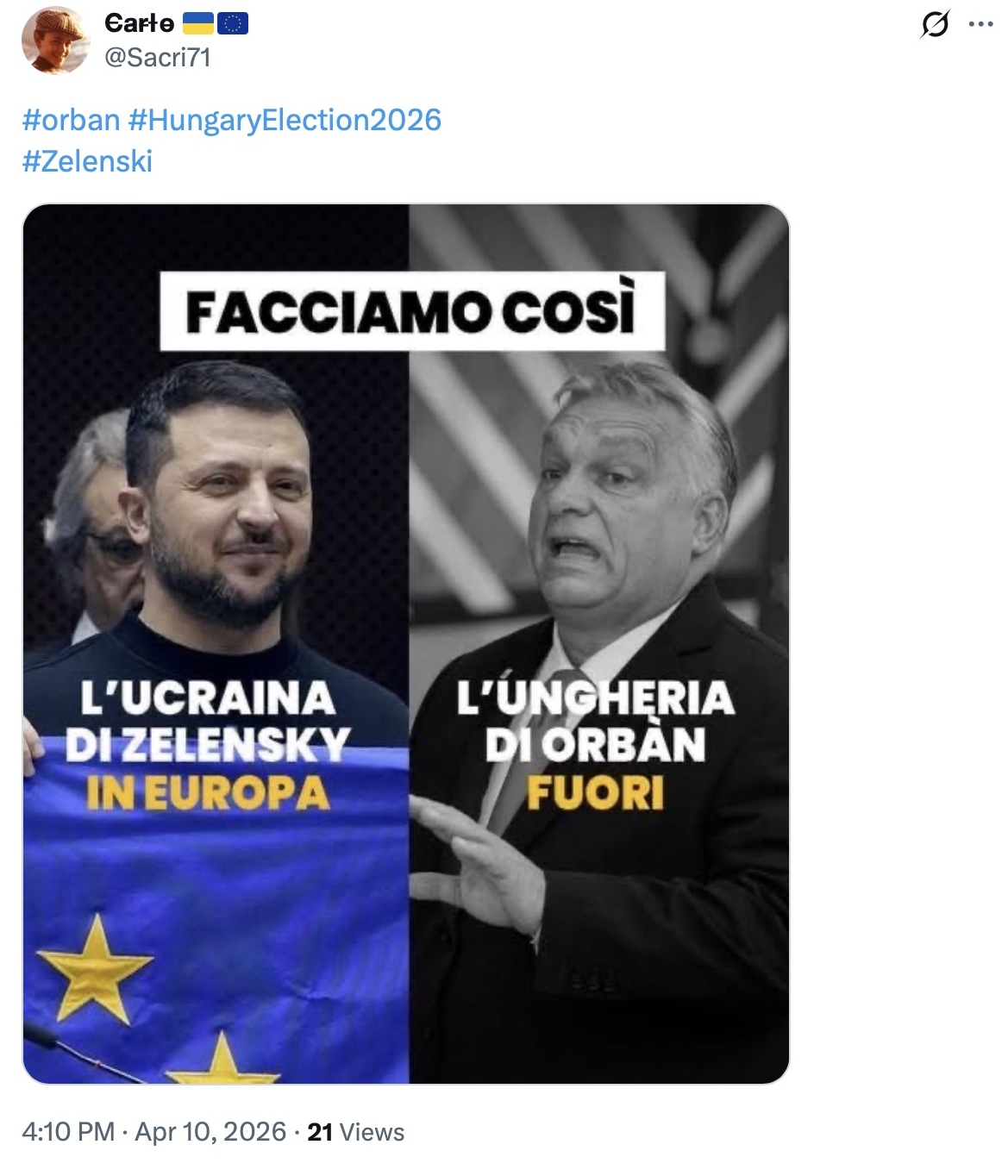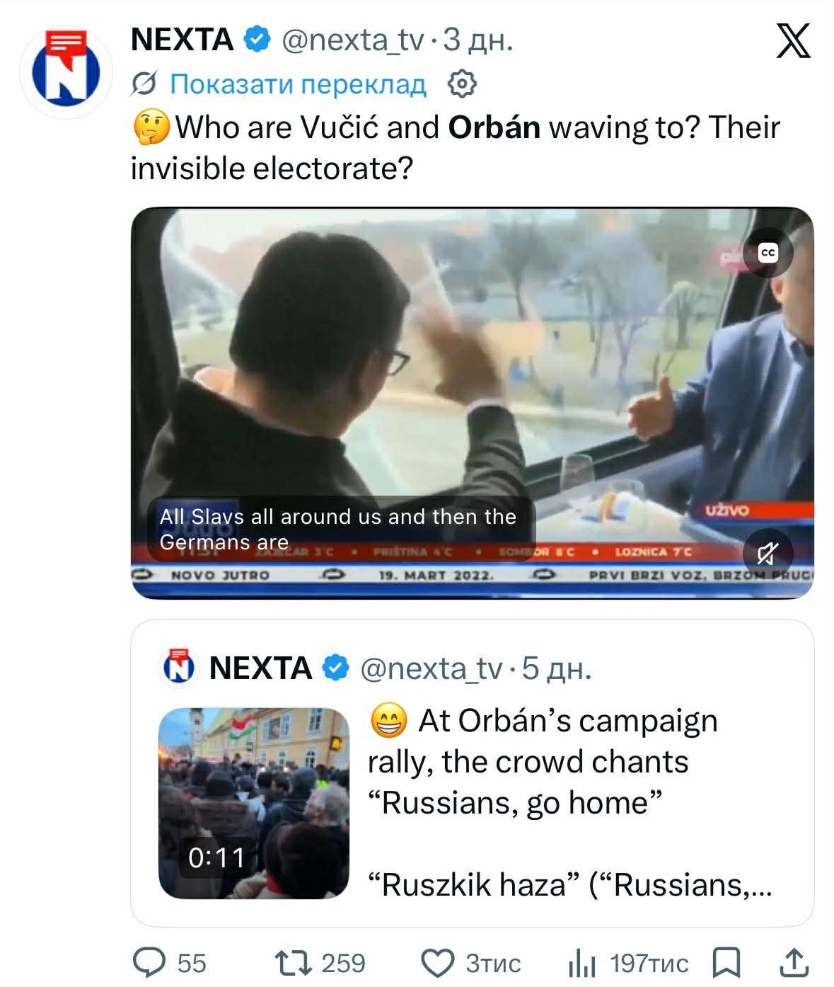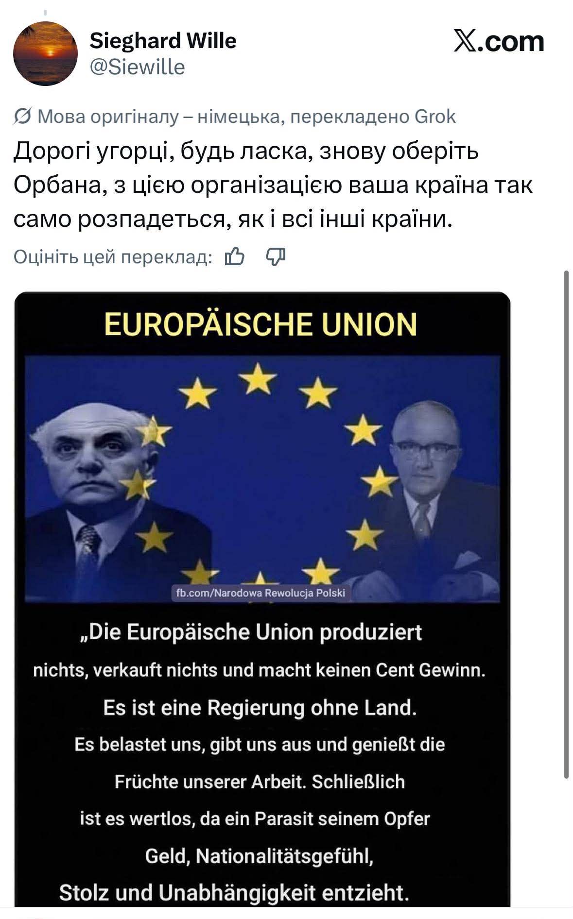 «У Віктора Орбана — російські цінності, і його люди скажуть це в неділю», — написала одна з користувачок.