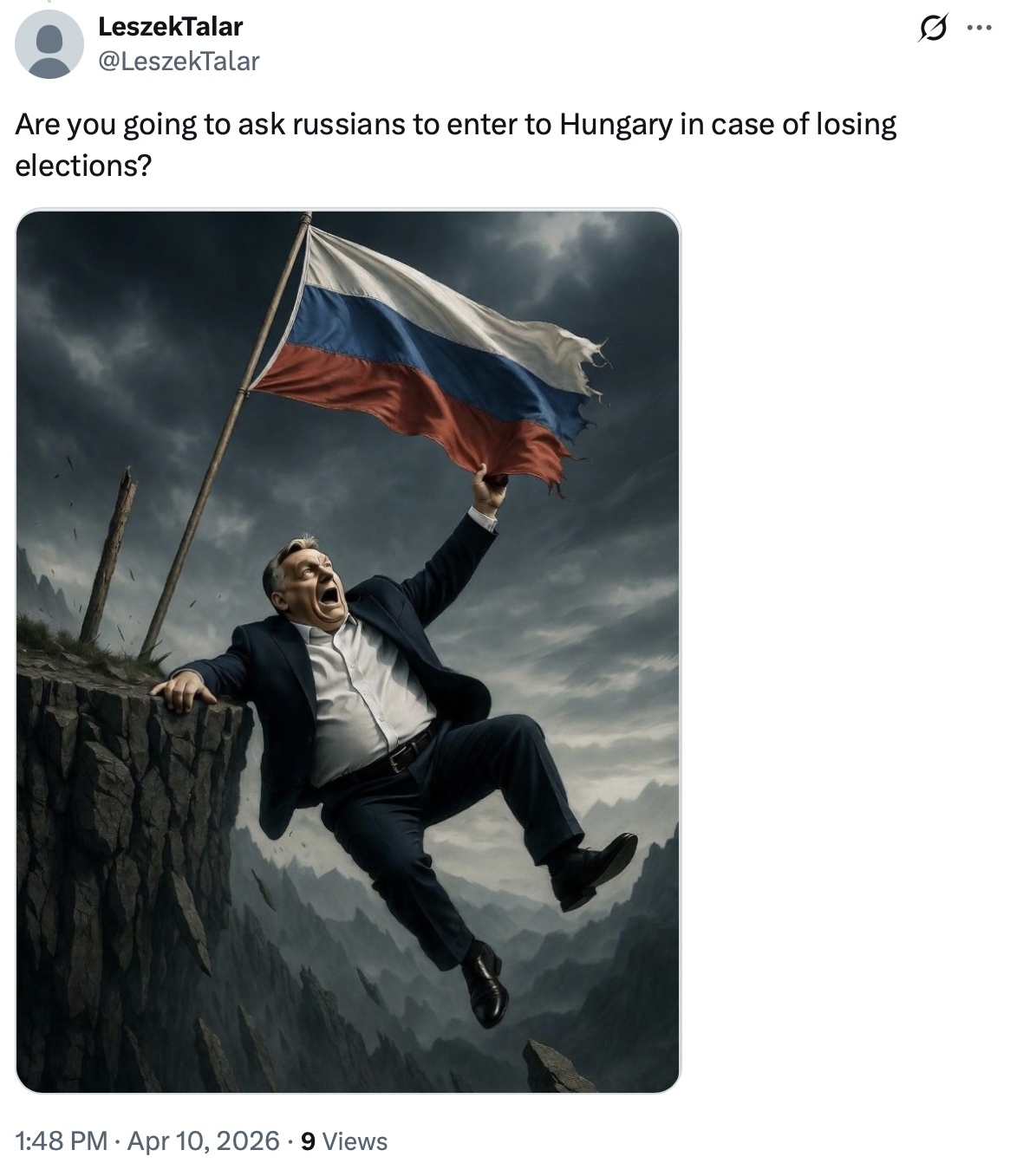 «Чи збираєшся ти попросити росіян вторгнутися в Угорщину, якщо програєш вибори?» — запитує автор допису.