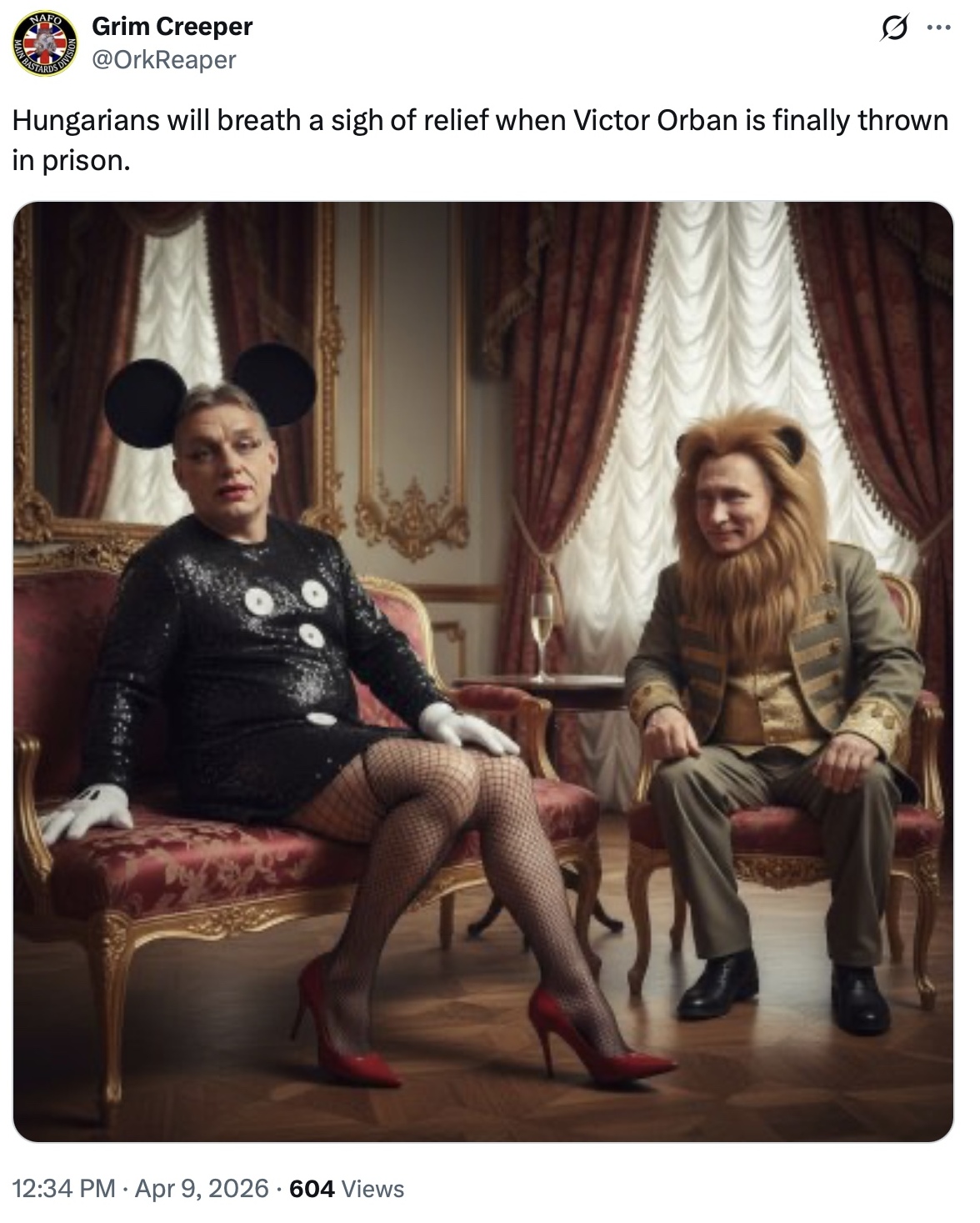 «NAFO (Північноатлантична організація друганів. — Ред.) також в Угорщині і допомагає своїм», — йдеться в дописі.